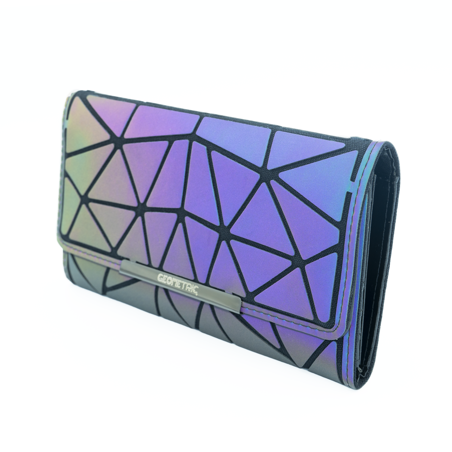 Cómoda, práctica billetera Geometric, para guardar tu dinero de forma organizada; también tiene un compartimiento para las monedas, cuenta con un diseño único y especial con colores hermosos con efectos tornasol, la cual te acompañará siempre de forma segura y protegida